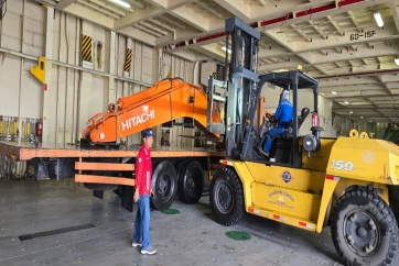 PT BKJ Handle Bongkar muat alat berat HITACHI dan CBU kapal TRANS HARMONY  di pelabuhan patimban,kami hadir dan melayani kegiatan Bongkar muat